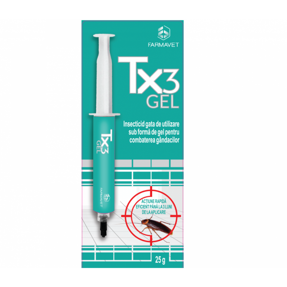 TX3 GEL este un insectivid inovator, gata de utilizare, sub forma de gel pentru combaterea principalelor specii de gandaci de ambele sexe in toate stadiile de dezvoltare (nimfe si adulti).