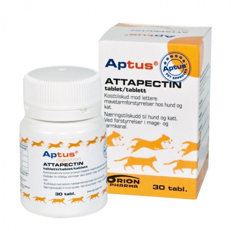 Aptus Attapectin Vet 30 cp - Protejeaza peretii tractului gastrointestinal, elimina toxinele si fermentatiile intestinale, la caini si pisici.