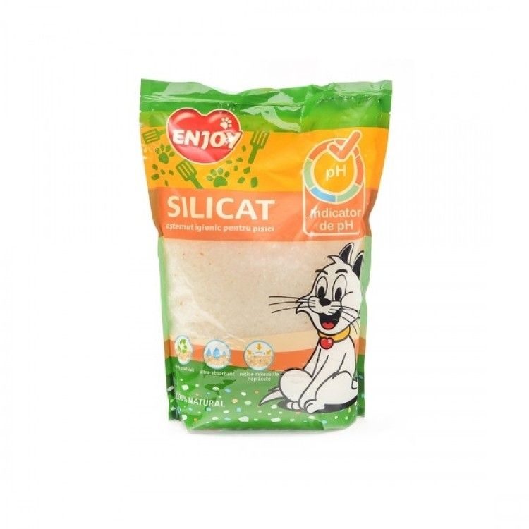 Asternut igienic pentru litiera Enjoy pH Indicator 5 L este pe baza de granule de siliciu pentru pisici cu indicator de pH urinar.